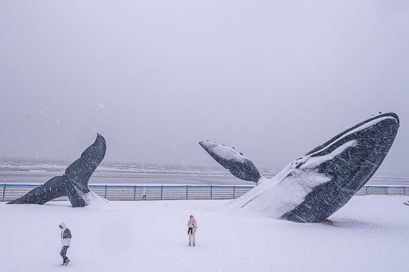 進入極地海洋動物館的極地大廳,雖身處室內,并無局限之感,中間部分上下貫穿,視野通透,乘扶梯到達二樓,令人視覺更加開闊。在模擬的極地環境中,冰雪溶洞、愛斯基摩人雪屋等極地景象隨處可見,在海獸混養池,游客們可以觀賞到白鯨、海象、北極熊、海獺、海狗、企鵝等珍稀的極地動物。